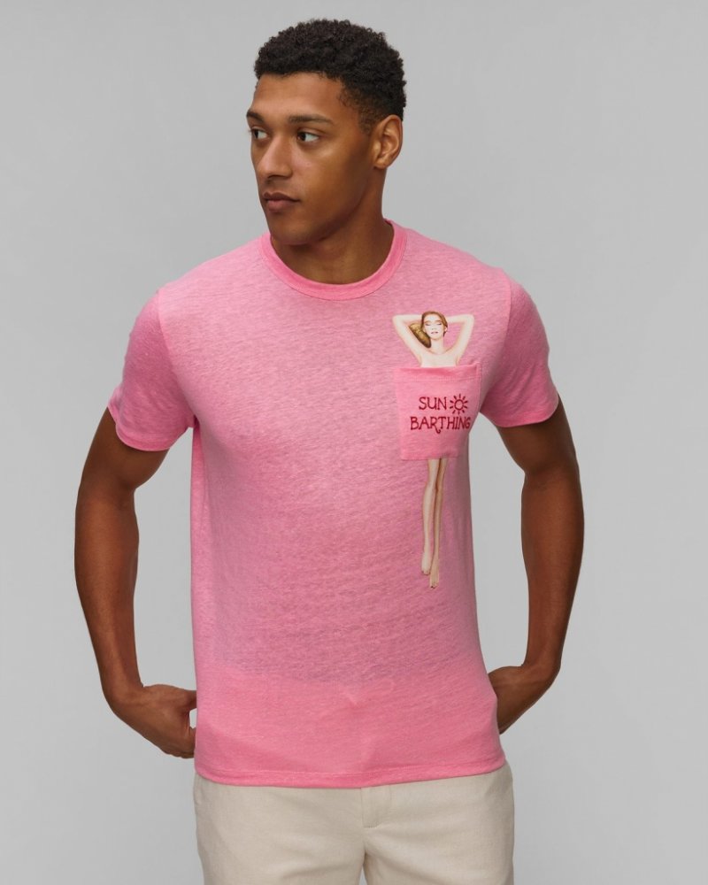 Mc2 Saint Barth Lněné pánské tričko Ecstasea Růžové