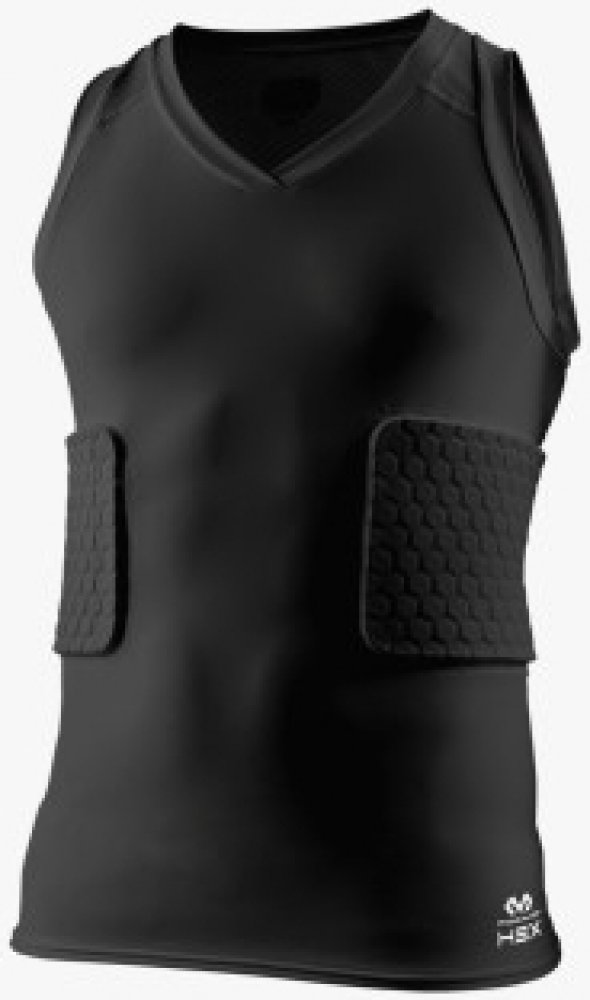 Triko bez rukávu McDavid HEX® Tank Shirt / 3-Pad je vybavené originálními chrániči HEX® z dílny McDavid, ve kterých je tato značka absolutním světovým lídrem. Jsou umístěné v oblasti žeber a páteře, dokonale se přizpůsobí vašemu tělu a nebrání v pohybu. Tvoří je pěna o síle 9 mm. Velice příjemný a dobře odvětraný materiál trika udržuje hráče po celou dobu v suchu a pohodlí. Navíc je navržené tak, aby sedělo pod basketbalový dres. Využít lze samozřejmě i pro ostatní kontaktní sporty – házenou, volejbal, fotbal, ragby a další.