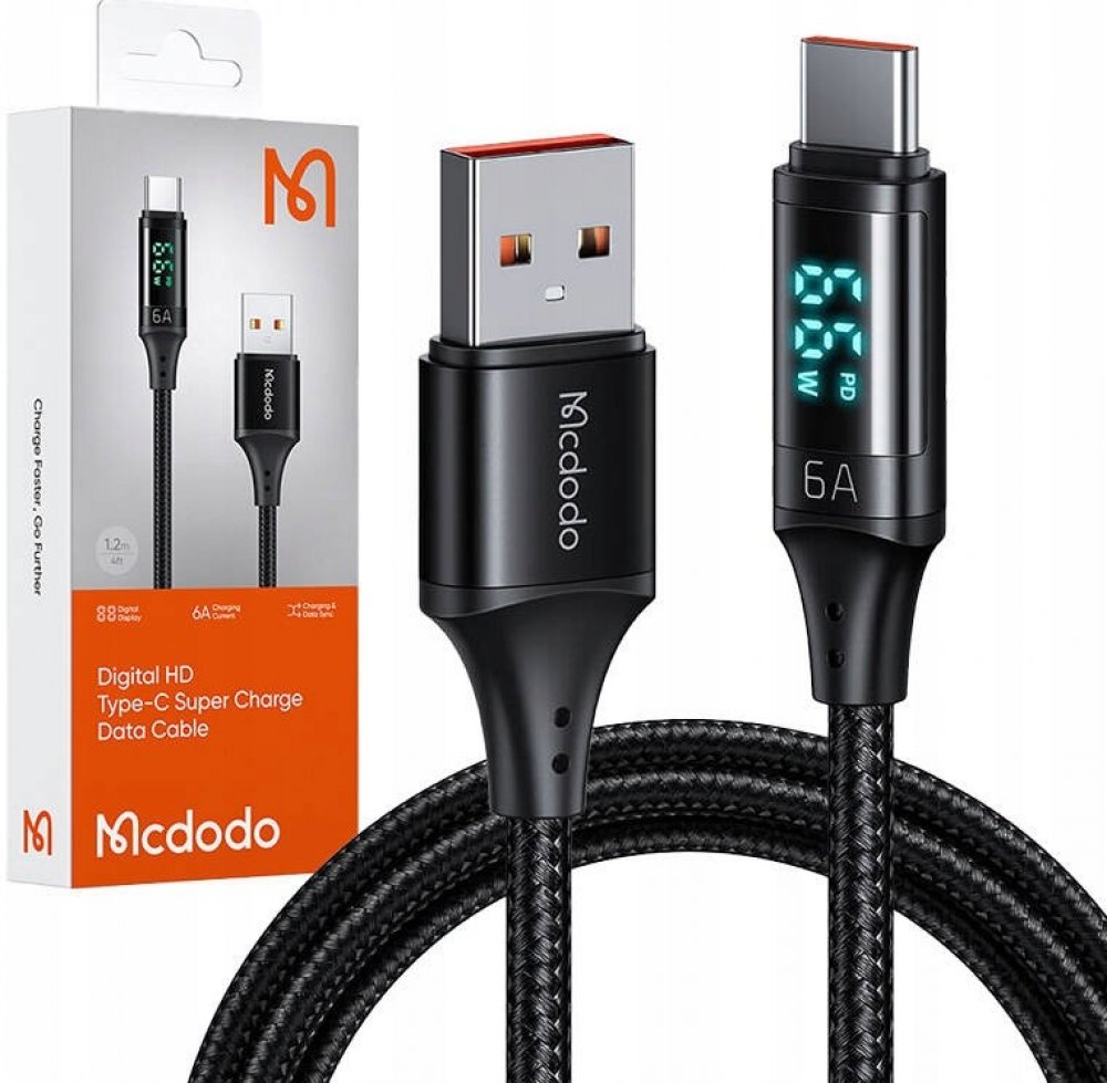 Kabel Mcdodo CA-1080 USB na USB-C s displejem, 66W, 6A, 1,2