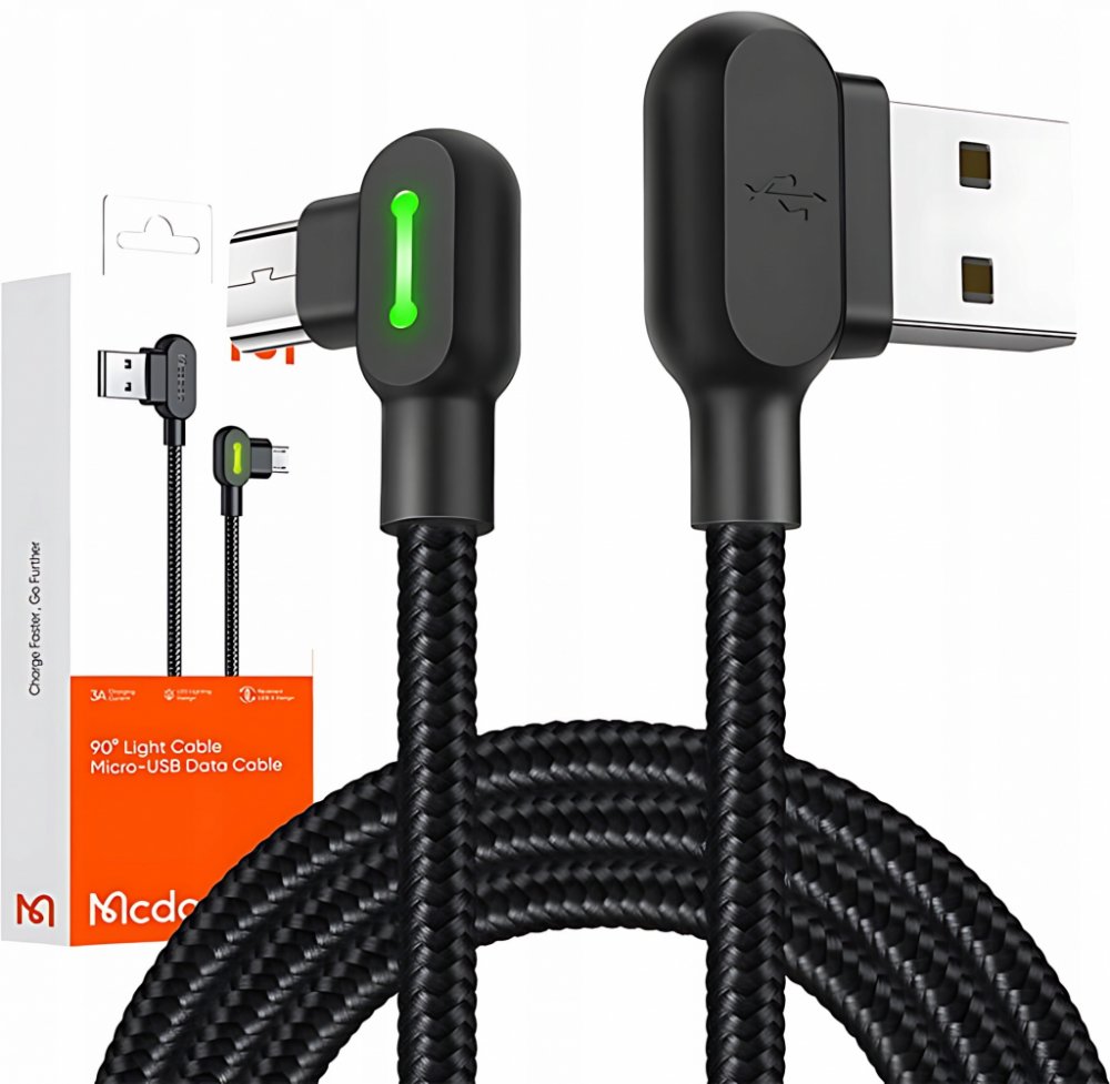 Kabel Mcdodo CA-5280 LED úhlový USB na Micro USB je vyroben z nylonu a je dlouhý 3 m. Výrobek umožňuje nabíjení zařízení se vstupem Micro USB a synchronizaci dat. Kabel se vyznačuje vysokou odolností a prošel zátěžovými testy. Výrobek je plně bezpečný - kontroluje teplotu a chrání zařízení před přehřátím a přebitím.