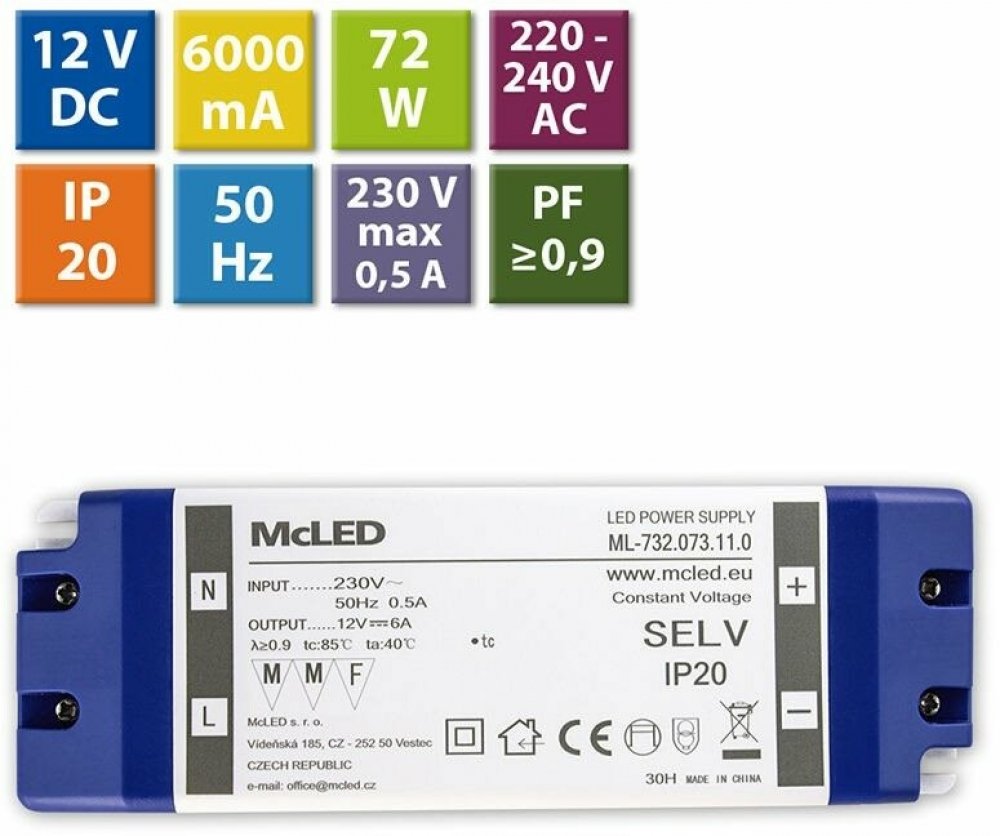 Uživatelé také hledali Napájecí zdroj McLED 12V 8,3A 100W ML-732.030.45.0 McLED GU10 5 W Neutrální bílá 4000K McLED LED žárovka MR16 GU5,3 5W 35W denní bílá 4000K , reflektor 12V McLED LED žárovka Spot 4W GU10 2700K teplá bílá