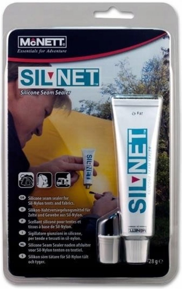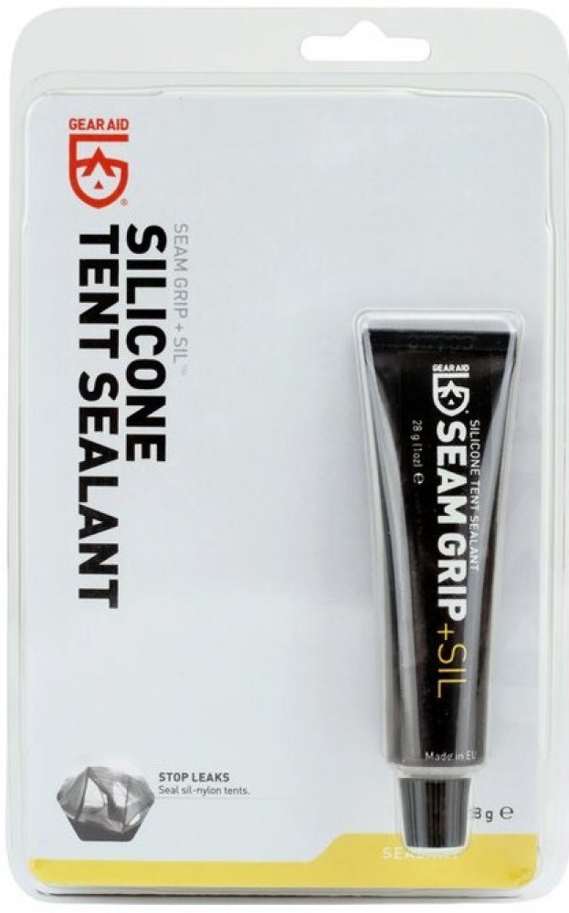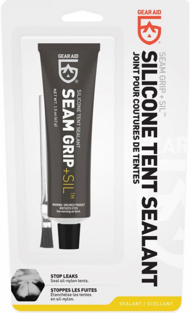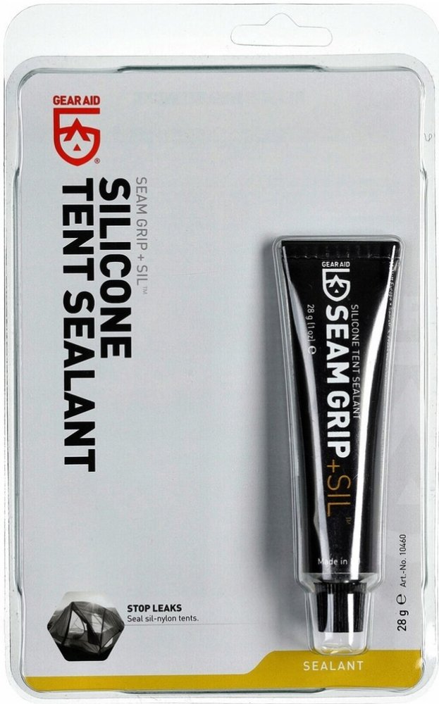 Gear Aid SEAM GRIP + SIL Silicone Tent Sealant je přípravek, kterým můžete snadno utěsnit švy na silikonizovaných tkaninách. Švy na tkaninách se silikonizovaným zátěrem nelze podlepit těsnící páskou, protože dostupné těsnící pásky na silikonizovaném povrchu nedrží. Proto se švy šijí nitěmi s určitým procentem bavlny, která ve vlhku nabobtná a ucpe otvory po jehle. Při nadměrném napnutí může opět dojít k otevření otvorů po vpichu a šev potom vodu propouští. Proto se doporučuje přetřít švy na silikonizovaných tkaninách těsnícím přípravkem, který je trvale pružný. Jedním z takovýchto těsnících přípravků je právě Gear Aid SEAM GRIP + SIL Silicone Tent Sealant. Zabraňuje pronikání vody švem a je trvale pružný. Pracovní postup Nanáší se přímo z tuby, případně štětcem, na čistý suchý povrch, přes nitě a do záhybů, v tenké vrstvě. Pokud je třeba povrch odmastit, ideální je použití isopropyl alkoholu. Vrstvu je třeba nechat zaschnout, což trvá 3-6 hodin. Před skládáním tkaniny je třeba se přesvědčit, zda nanesená vrstva nelepí. Bezpečnostní list k produktu najdete zde.