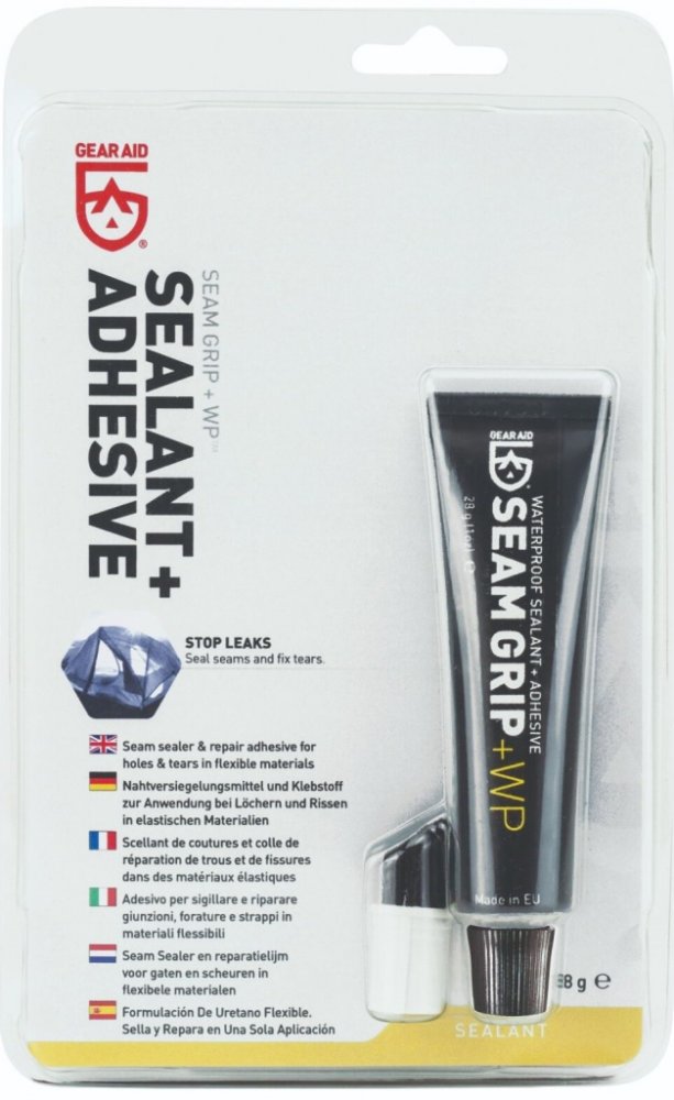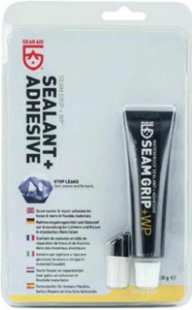 SEAM GRIP+WP je lepidlo na bázi polyuretanu pro opravu lehkých zátěrovaných a membránových tkanin. Ze skupiny SEAM GRIP / AQUASURE má nejnižší viskozitu, vytváří tenkou vrstvu PU pryže, která je samonosná, pružná a ohebná. Slep je dokonale vodotěsný. Umožňuje bezzáplatové lepení, zcelováni natupo a také rekonstrukci chybějícího materiálu do otvoru o průměru 20 mm.