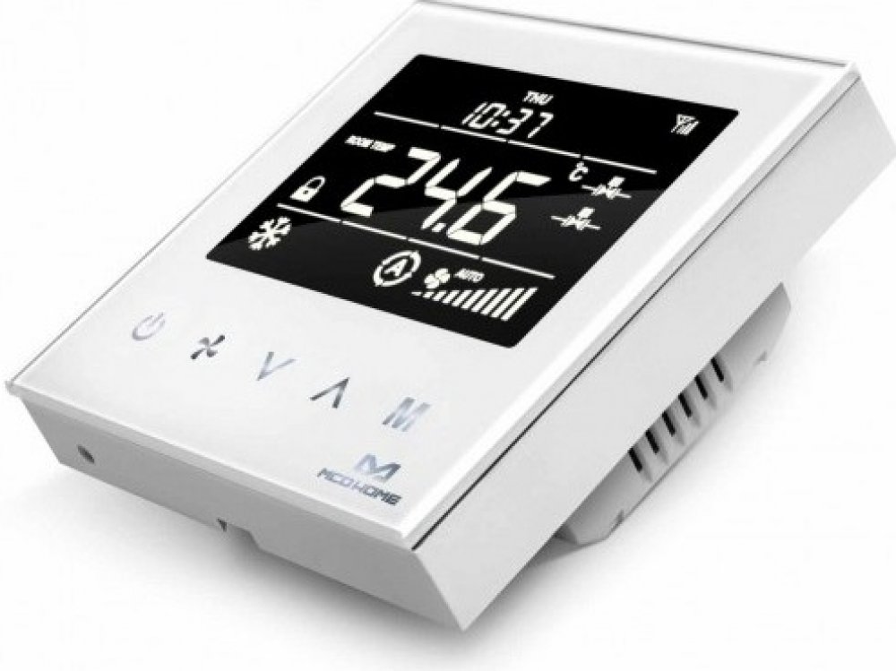 MCOHome Fan Coil Termostat je Z-Wave zařízení umožňující interiérovou teplotní kontrolu. Používá se hlavně v 4 potrubním Fan coil systému. Může číst pokojovou teplotu a lokální čas a také automaticky ovládat rychlost ventilátoru, založená na teplotním rozdílu. Zařízení je vysoce spolehlivé a praktické. Tento produkt může být přidán a ovládán pomocí jakékoli Z-Wave síti s jinými certifikovanými zařízeními od jiných výrobců.