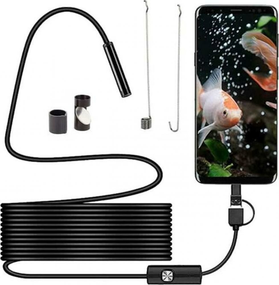 INSPEKČNÍ ENDOSKOPICKÁ KAMERA ANDROID 5M 8MM FULL HD S USB, USB-C a MICRO USBNová, inovativní plně vodotěsná endoskopická kamera s 8 LED diodami s nastavitelnou intenzitou světla. Má velmi pružný a odolný kabel, hrot s magnetem, háček a zrcátko. Kamera má zorný úhel 70 stupňů. Nyní již nebude problém natáčení a živé sledování na těžko dostupných místech.KOMFORT POUŽÍVÁNÍPevné a flexibilní pouzdro ...