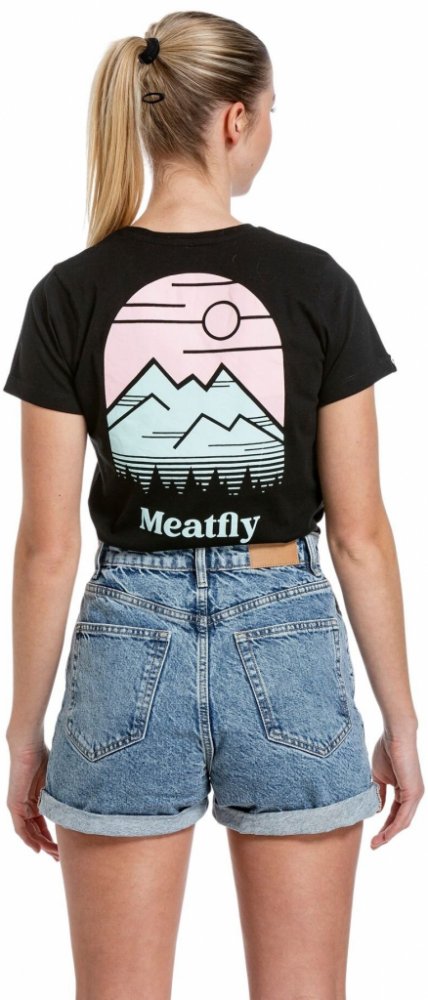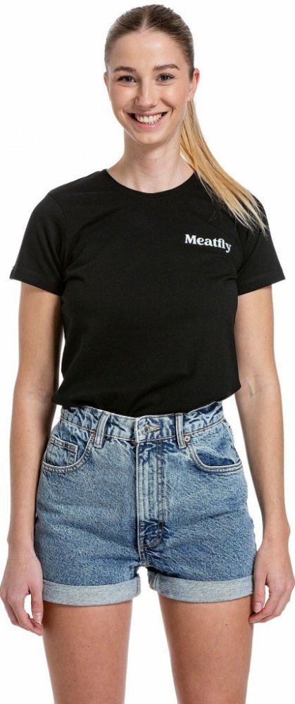 s krátkým rukávem 100% bavlna Meatfly černá s kulatým výstřihem regular fit s malým výstřihem