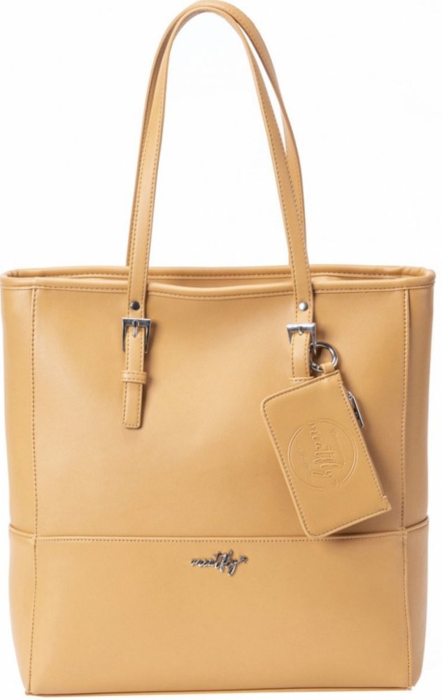 Elegantní kabelka Slima z pevné syntetické kůže je stylovým a praktickým doplňkem pro každý den. Díky prostorné hlavní přihrádce na zip, vnitřním kapsám a zpevněnému dnu nabízí dostatek prostoru a skvělou organizaci. Pevná ucha a odnímatelná kapsička na zip s logem přidávají kabelce na funkčnosti i módním vzhledu. Rozměry jsou ideální pro pohodlné nošení všech nezbytností, ať už do práce nebo na volný čas. Úložný prostor hlavní prostorná přihrádka na zip uvnitř jedna kapsička na zip a dvě menší otevřené Funkční detaily pevná ucha zpevněné dno Něco navíc malá odnímatelná kapsička na zip s logem Materiál syntetická kůže podšívka - směs bavlny a polyesteru Rozměry 37 x 32 x 11 cm (V/Š/H)