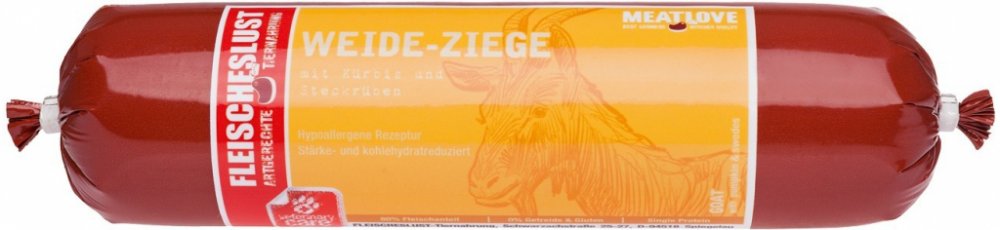 Složení: 80 % kozí maso a vnitřnosti (50 % kozí maso, 20 % kozí srdce, 15 % kozí plíce, 15 % kozí játra), 9 % tuřín, 8 % dýně, 2 % šípky, 1 % tymián.