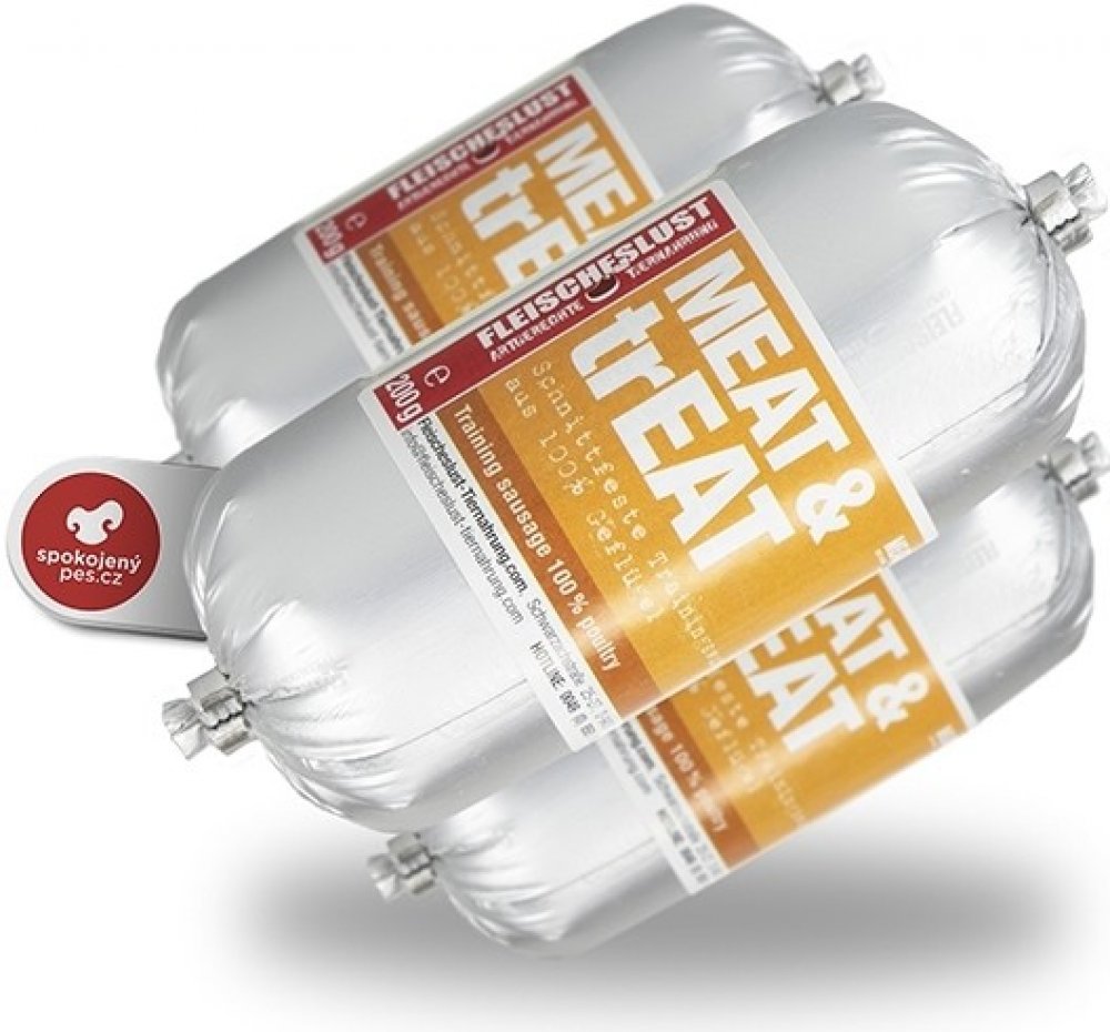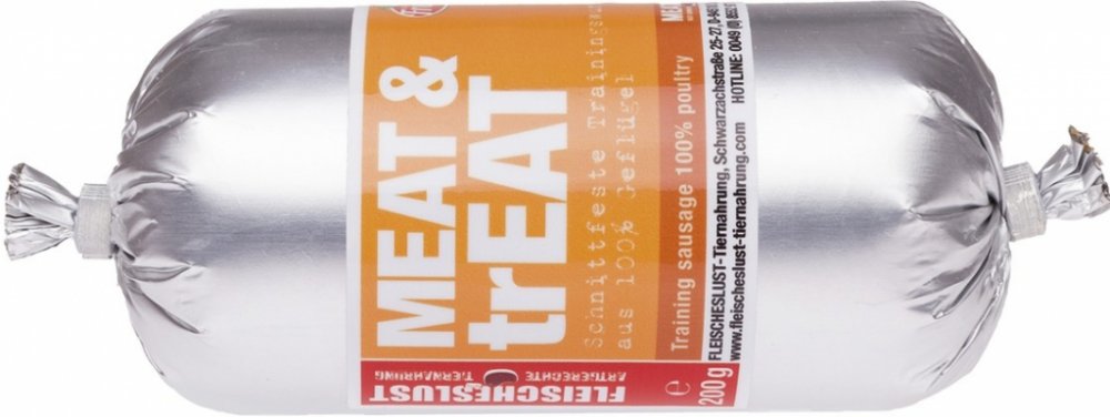 MEAT & TREAT jsou speciálně vyvynuté pochoutky, které uspokojí ty nejnáročnější mazlíčky. Hodí se zejména při tréninku. Skvělá konzistence a jednoduchý tvar spolu s úžasnou chutí a vůní dovede vás i vašeho mazlíčka při každém tréninku snadno o level výš. Samozřejmě jej také můžete využít ke zlepšení chutnosti vašeho běžného krmiva anebo pro zlepšení nálady vašeho kamaráda.