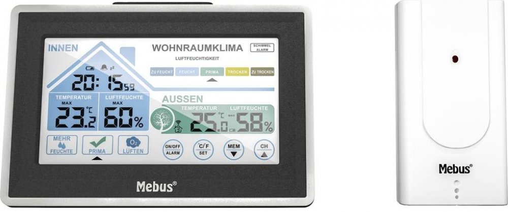 Mebus 01026 je moderní radiová meteostanice, ideální pro domácí použití. Skvěle se hodí pro předpovídání počasí a poskytuje přesné informace o atmosférických podmínkách. S tímto zařízením budete moci snadno plánovat své dny bez nepříjemných překvapení počasí.
