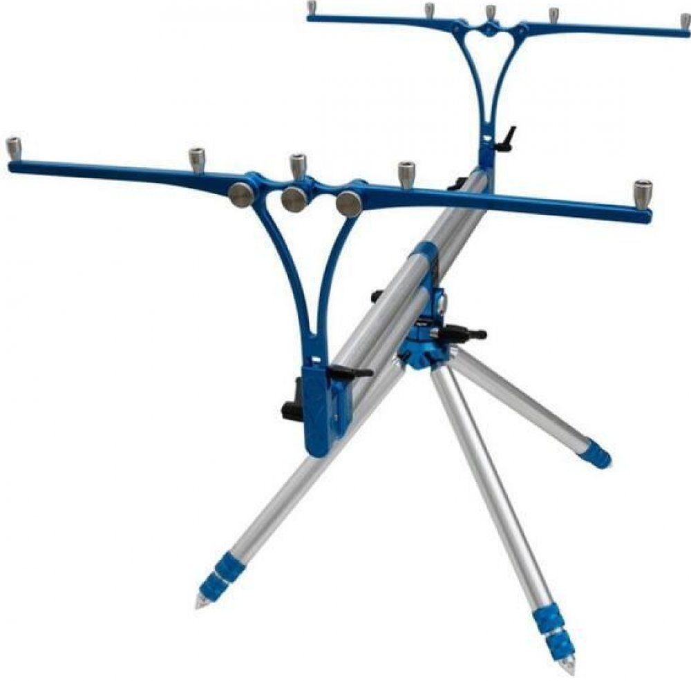 Meccanica stojan na pruty Nick Revolution stříbrné trubky a modré doplňky na 4 pruty