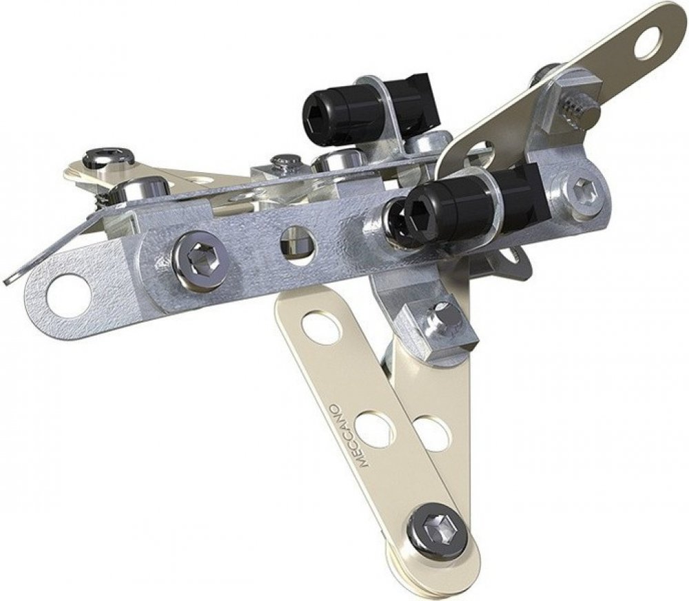 Stavebnice MECCANO -Tryskové letadlo 2 pro malé konstruktéry od 8 let. Vytvořte si model stíhačky. Použijte součásti pro vlastní konstrukci. Meccano odolné kovové díly umožňují znovu a znovu skládat díly do dalších nových modelů. Sada obsahuje 55 součástek, nářadí a návod krok za krokem.