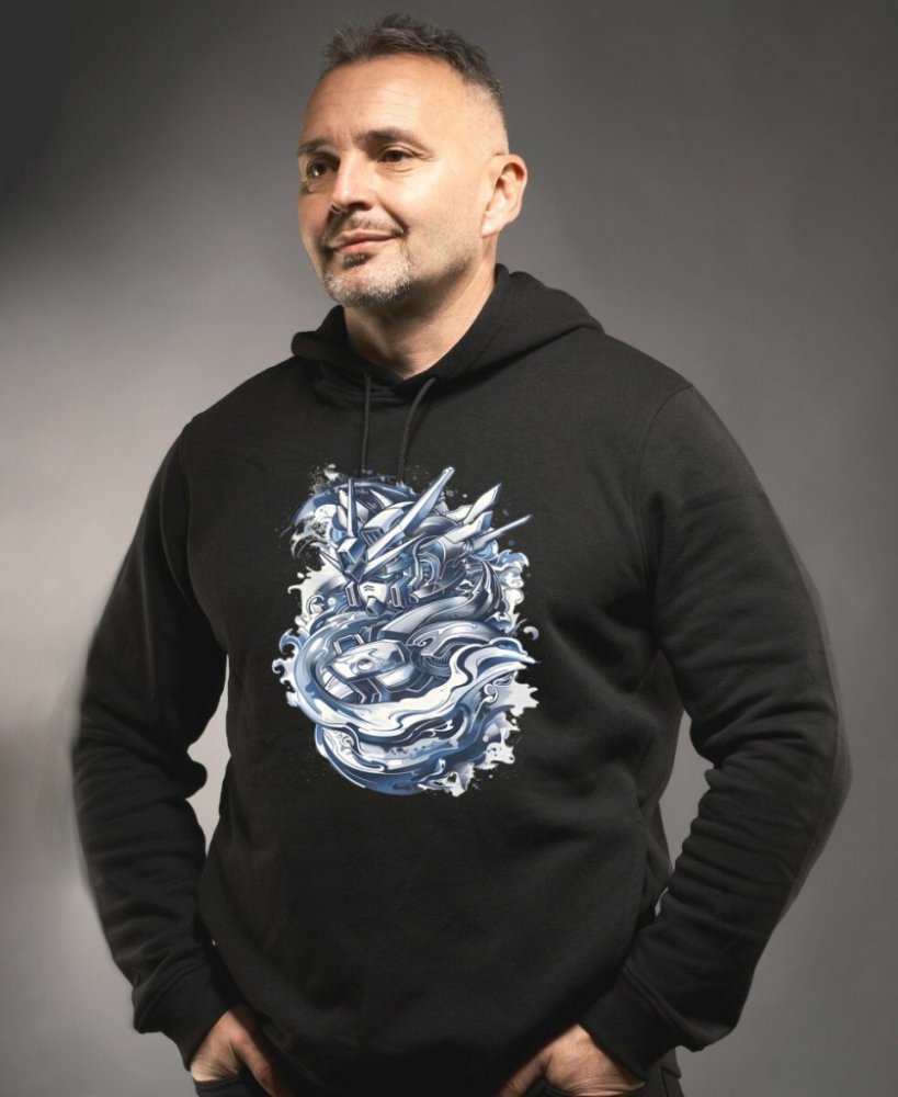 Mech Gundam, V2. Kde se střetává ocel a japonská estetika. Detailní mecha design inspirovaný Gundamem, je dokonalou kombinací sci-fi a tradičního umění. Ideální pro fanoušky anime, manga a silných grafických kontrastů.