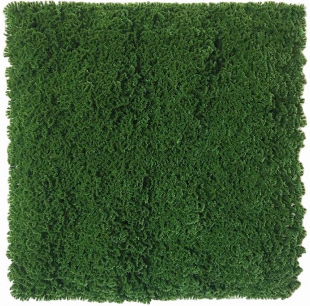 Realistická imitace mechu, která je umístěna na dílci o rozměru 50 x 50 cm. Tyto panely mechu je možné využít například na vytvoření interiérové mechové zdi.
