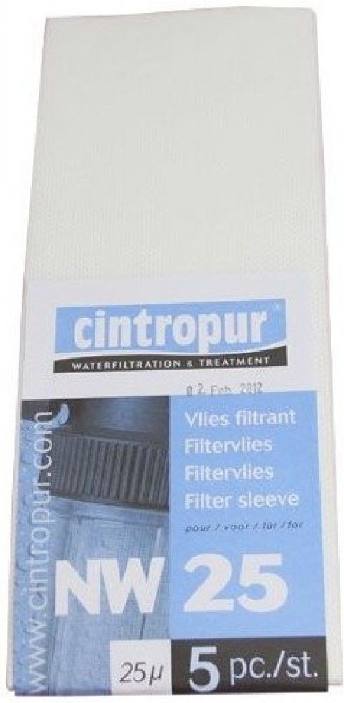 Mechanické filtrační vložky pro filtr Cintropur NW25:Náhradní mechanické vložky pro filtry Cintropur vypadají jako "ponožky", které se navlékají na plastový válec uvnitř filtru.Tyto vložky se dodávají v balení po 5 kusech. Cena je za balení.Filtry Cintropur diky konstrukci vložek mají nejnižší provozní náklady a největší průtoky v porovnání s jiný filtry z naší nabídky.Materiál vložky: PolyesterMa...