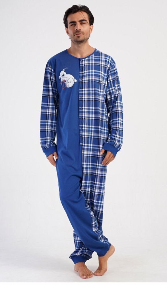 Méďa Ospalec pánský pyžamový overal tm.modrý