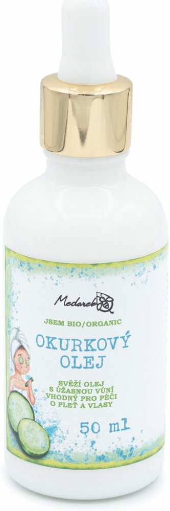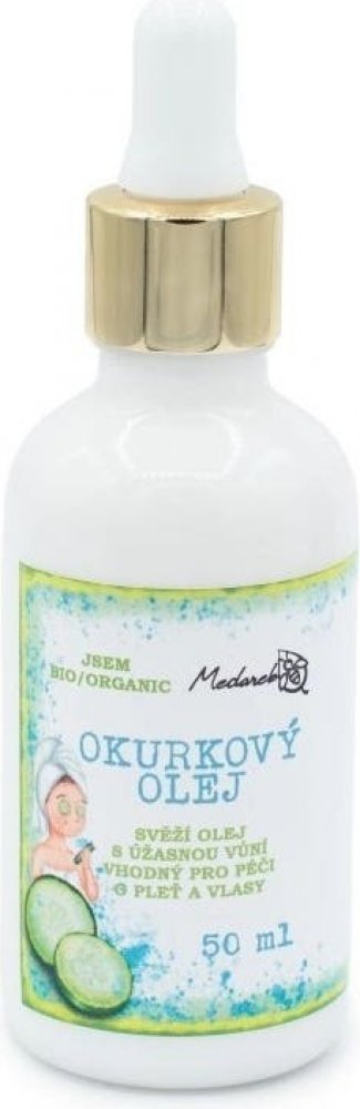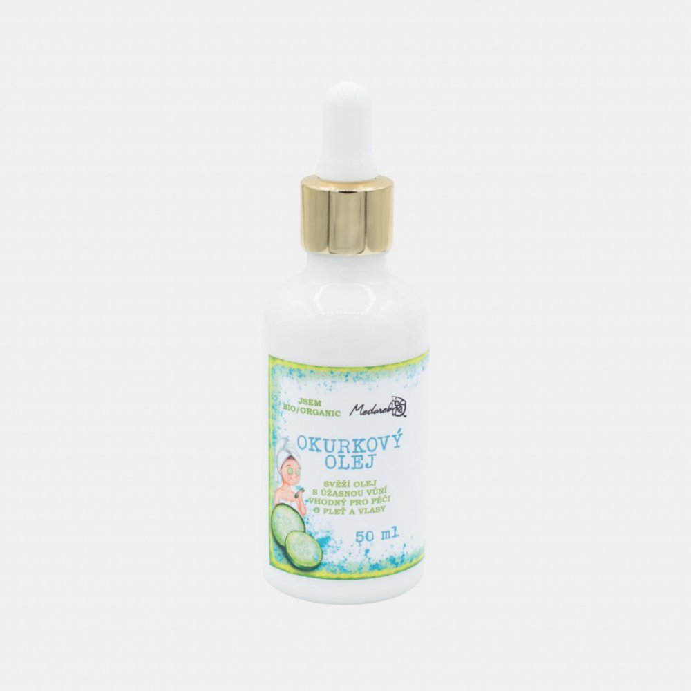 Olej ze semen Okurky seté vás ohromí svou svěží vůní a rychlou vstřebatelností. Okurka má silné antioxidační vlastnosti, proto se dávají plátky okurky na oči při potřebě zmírnit kruhy pod očima. Olej díky vysokému obsahu přírodních tokoferolů a fytosterolů podporuje regeneraci buněk, je tedy velmi vhodný pro pleť zralou, spálenou od slunce či problémovou. Ocení jej však i ženy s bezproblémovou pletí.