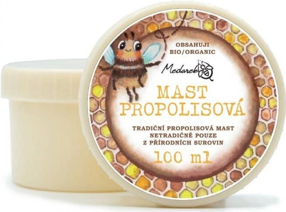 Tradiční propolisová mast vyrobena z přírodních surovin. Klasické propolisové masti mají základ z vazelíny (ropy). Naše propolisová mast má základ z bambuckého másla a mandlového oleje, tuhost pak zajišťuje včelí vosk.