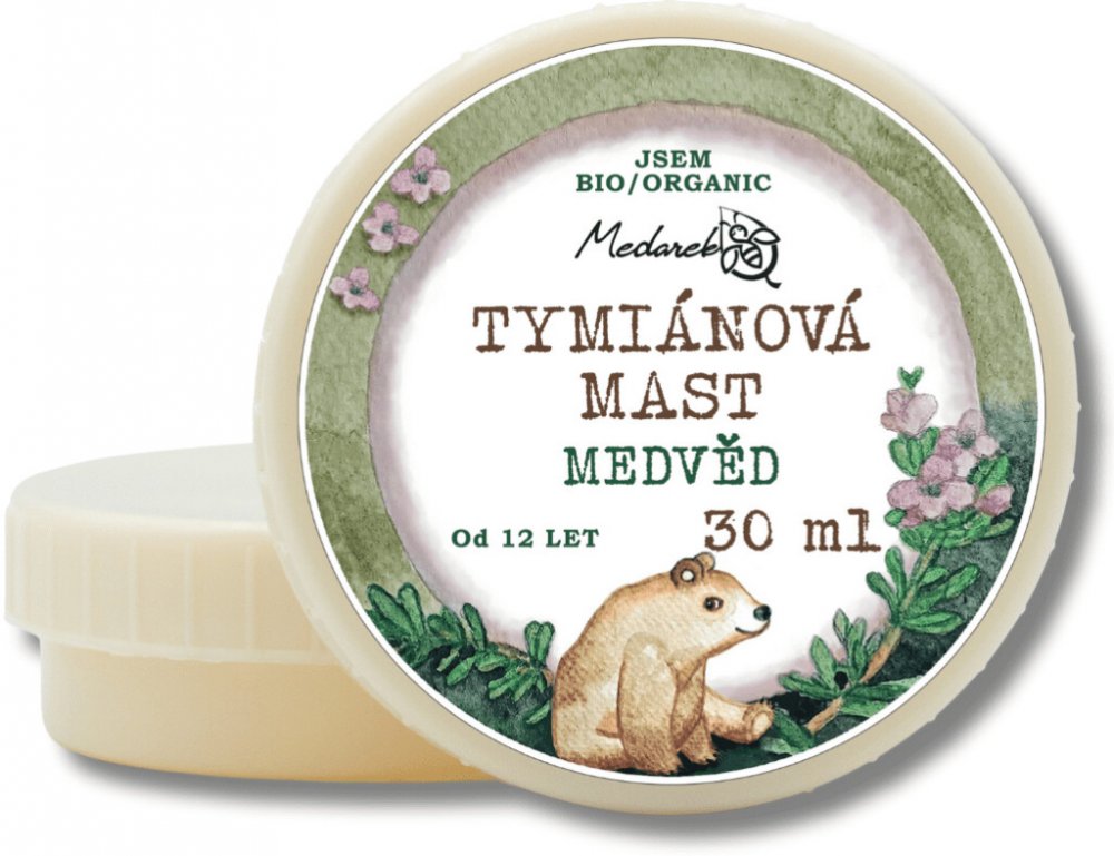 Zcela přírodní a 100% bio (organická) mast vhodná pro podporu organismu při nachlazení. Medvěd je vhodný pro děti od dvanácti let a pro dospělé. Se sestavováním receptury nám pomáhala vystudovaná aromaterapeutka Bronislava Hradecká.