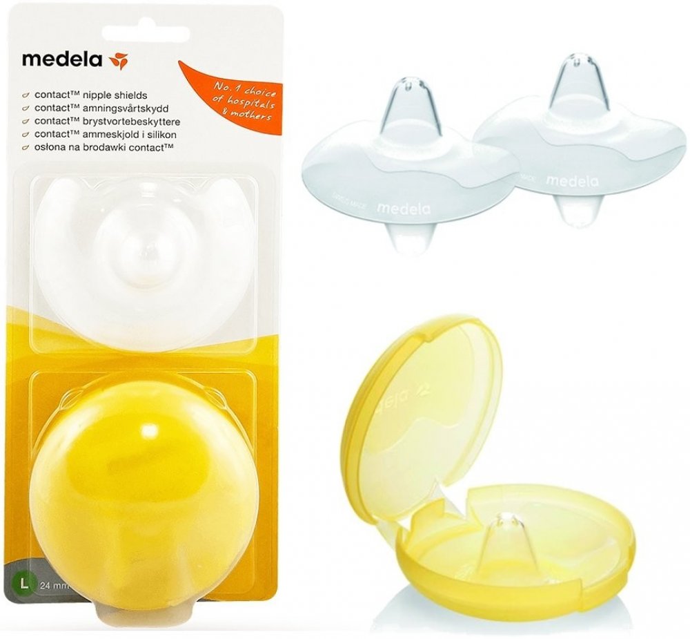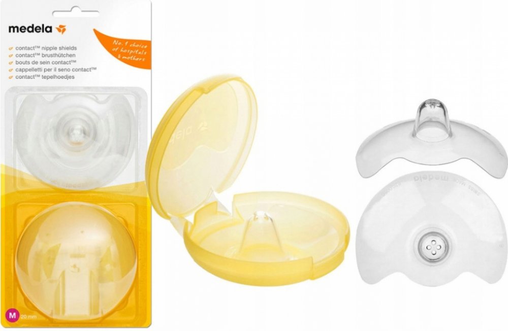 Medela kontaktní kojící kloboučky na bradavky chrání bradavky během krmení a pomáhají dítěti přisát se. Speciální tvar nabízí těsný kontakt s pokožkou Kloboučky 100% bez BPA jsou k dispozici ve třech velikostech a jsou uloženy v praktické krabičce pro hygienické skladování