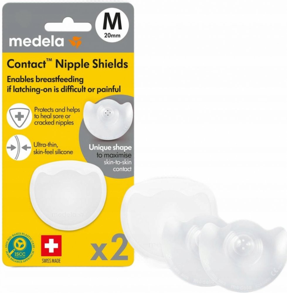Medela kontaktní kojící kloboučky nabízí pevný, pohodlný a praktický způsob, jak usnadnit kojení v případě plochých nebo vpáčených bradavek. Medela kojící kloboučky jsou navrženy tak, aby pomáhaly maminkám nakojit své děti v případě problémů s přisátím díky většímu a pevnějšímu bodu pro přisátí. Mohou pomoci také maminkám s plochými, vpáčenými nebo bolestivými bradavkami. Kontaktní kojící kloboučky jsou speciálně navrženy s vykrojením, aby poskytovaly bližší kontakt dítěte s Vaší pokožkou.
