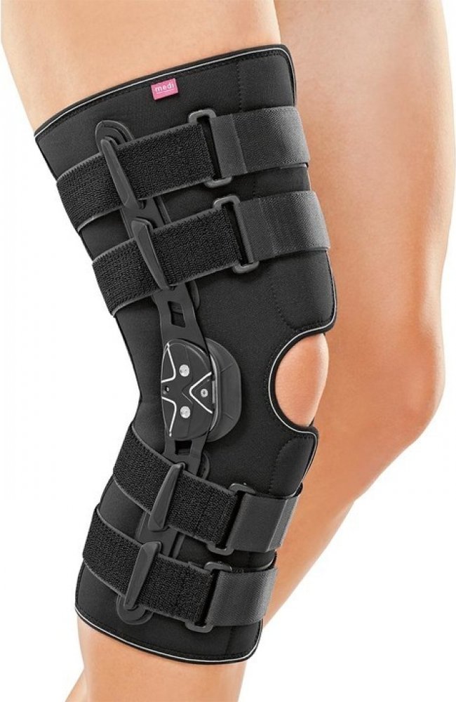 Dlouhá funkční kolenní ortéza rozepínací po celé délce se snadnou aplikací a dobrým vedením čéšky, polycentrické kolenní dlahy z lehkého kovu, s možností limitovaného pohybu kolene: extenze: 0°, 10°, 20°, 30° a 45° flexe: 0°, 10°, 20°, 30°, 45°, 60°, 75°, 90° imobilizace: 0°, 10°, 20°, 30°, 45° Lehký, pružný materiál D-Tex umožňuje propustnost potu, zaručuje vysoký komfort nošení ortézy, takže ortéza je vhodná i k dlouhodobému užívání. Nasazení ortézy je velice jednoduché díky rezepínaní po celé délce. Kolenní kloub nového typu s jednoduchým nastavováním limitace bez použití nástroje. Tabulka velikostí a měření velikost obvod stehna 15 cm nad kolenem [cm] XS 31-37 S 37-45 M 45-51 L 51-57 XL 57-65 XXL 65-74 Indikace: lehké a středně těžké nestability kolene včetně lézí zkřížených vazů, doléčení po operacích kolene včetně operací vazů, léčení úrazů vazů kolenního kloubu nevyžadující operaci, degenerativní a revmatické onemocnění s výraznější nestabilitou, poranění menisku.
