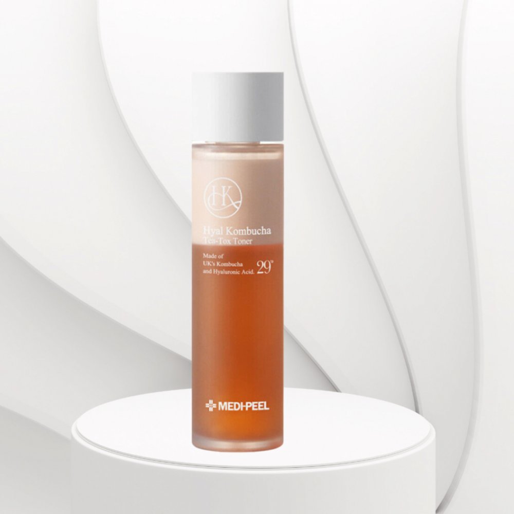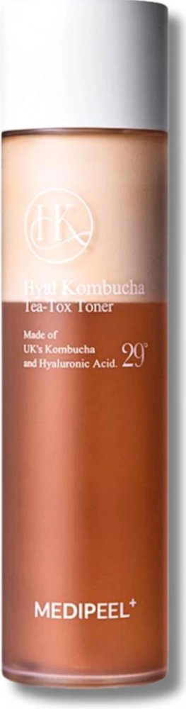 Dvoufázový toner MEDIPEEL Hyal Kombucha Tea-Tox Toner zjemňuje a vyživuje pokožku, obnovuje poškození, odstraňuje suchost a šupinatění. Vyhlazuje pleť, podporuje její pružnost a udržuje přirozený pH-balanc (~6,0).