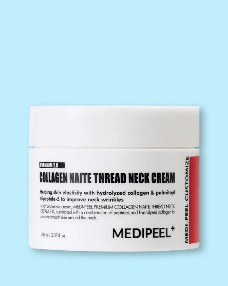 MEDIPEEL Premium 3.0 Collagen Naite Thread Neck Cream je vylepšený krém s vysokou koncentrací kolagenu (97 500 ppm) a účinným peptidovým komplexem, který intenzivně vyživuje pokožku, obnovuje její pružnost a pevnost v oblasti krku a dekoltu.