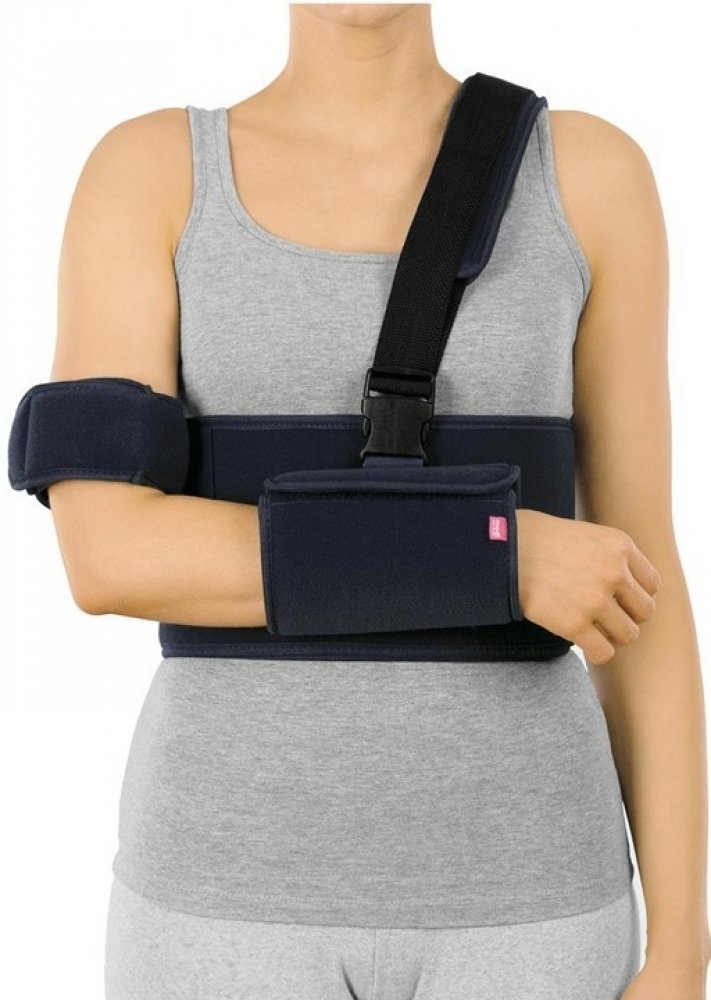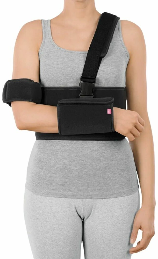 Bandáž ramene z prodyšného materiálu s účinnou fixací paže. k fixaci ramene a účinné fixaci lokte polstrovaný popruh tažený přes záda a rameno nezatěžuje krční páteř nastavitelný popruh prodyšný materiál k pooperační imobilizaci ramene pro doléčení luxace ramene ke konzervativní léčbě akutního impingement syndromu k doléčení po úrazech ramene univerzální velikost oboustranné provedení barevné provedení: černý Indikace: imobilizace ramene, doléčení luxace ramene, konzervativní léčba akutního impingement syndromu, doléčení úrazů ramene