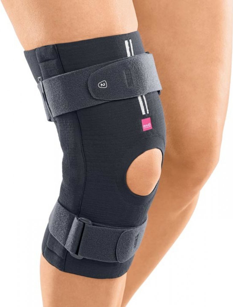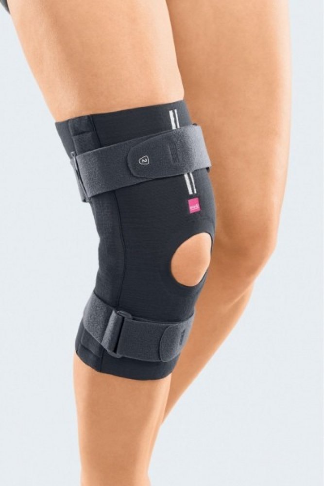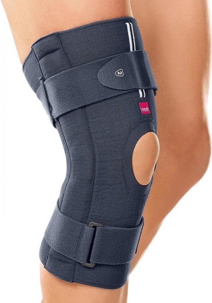 Krátká, lehká, funkční kolenní ortéza z prodyšného materiálu medi Airtex+. Postranní dvouosé dlahy s nízkým profilem a vynikající boční stabilitou stabilitou. Prodyšný materiál s kompresním a propriocepčním efektem „airtex+“, zesílení pevnosti velcro páskami, snadná aplikace a limitace hyperextenze dělají s ortézy velmi komfortní výrobek. Tabulka velikostí a měření velikost obvod 15 cm nad kolenem [cm] XS 31-37 S 37-45 M 45-51 L 51-57 XL 57-65 XXL 65-74 XXXL 74-84 Indikace: lehké a střední nestability kolena, prevence hyperextenze, meniskopatie, bolesti a otoky při artróze nebo artritidě.