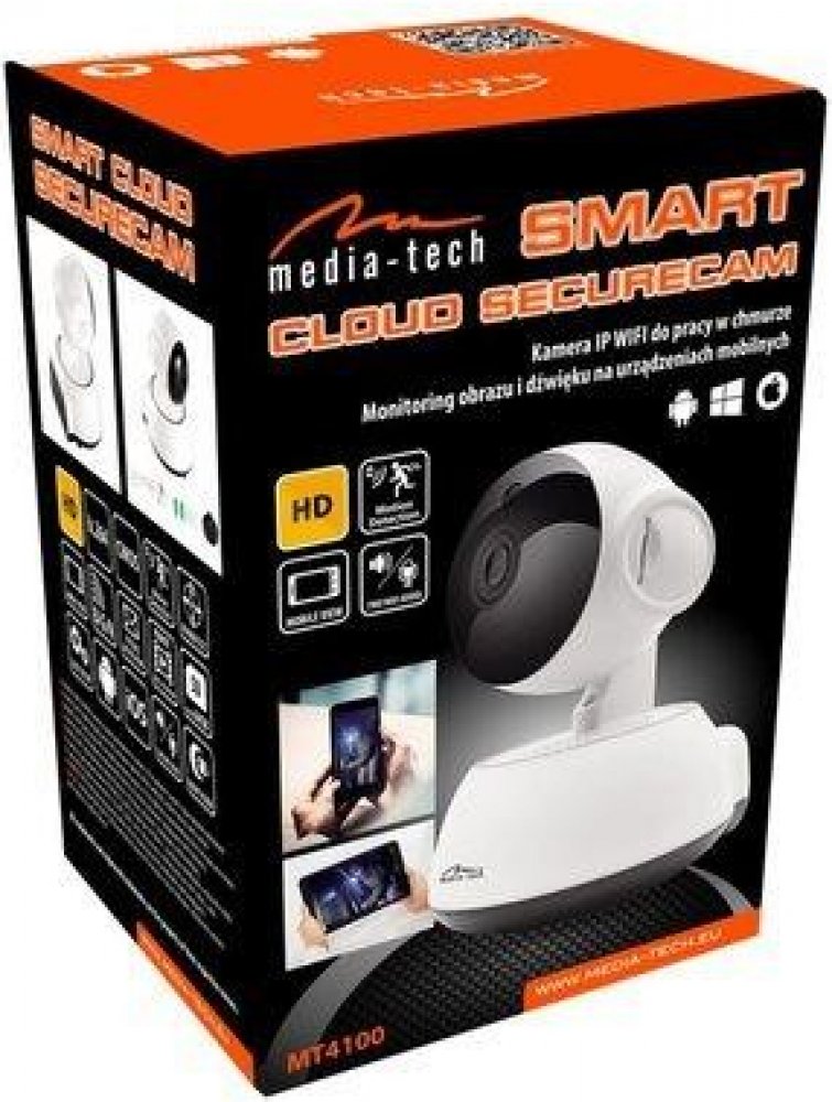 Media-Tech SMART CLOUD SECURECAM MT4100 - Síťová bezpečnostní kamera - otáčení/naklonění - barevný (Den a noc) - 1280 x 720 - 720p - pevné ohnisko - audio - bezdrátový - Wi-Fi - AVI, H.264 - DC 5 V