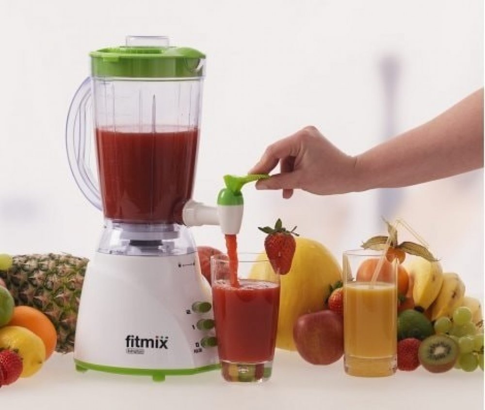 Fitmix- mixér s vysokým výkonem rozmixuje zeleninu, ovoce, ořechy, bylinky, perfektní pro výrobu zdravých smoothies, džusů, polévek a pokrmů. 4 „Piraňa“ nože s 10 000 ot./min, 3 světelná tlačítka k obsluze, dávkování díky integrovanému kohoutku na čepování.