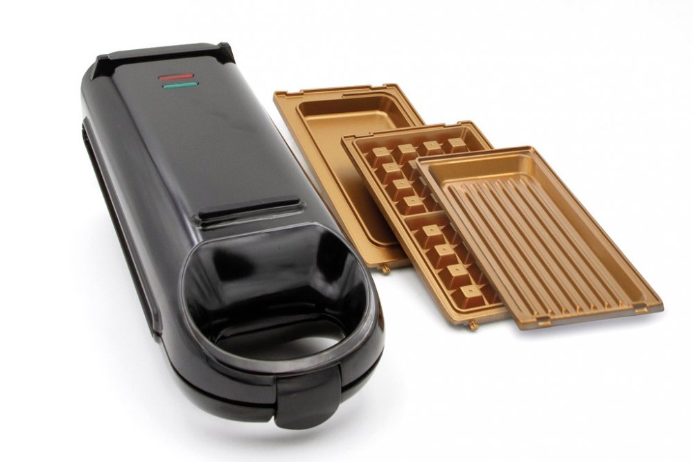 Včetně 3 vyměnitelných vložek pro přípravu XL omelet, grilovaný specialit a vaflí