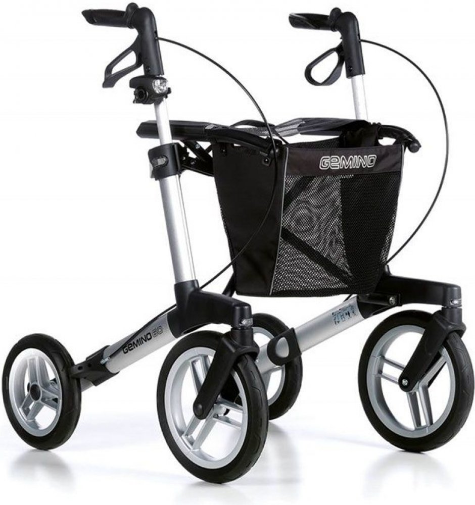 Robustní chodítko Gemino 60 je určené pro aktivní venkovní použití, ale také je to praktický společník do interiéru. Lehké a přitom pevné jako skála. Vysoce kvalitní materiály a mimořádně velká měkká kola zajišťují pohodlnou chůzi. Velký rozvor kol zajišťuje maximální stabilitu a zároveň nabízí extra prostor pro chůzi a velmi prostornou sedačku. Máte s sebou spoustu věcí? Praktický košík unese až 10 kg. Toto chodítko se samozřejmě také snadno skládá - pro kompaktní skladování a snadnou přepravu.