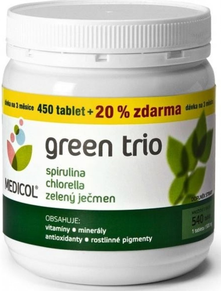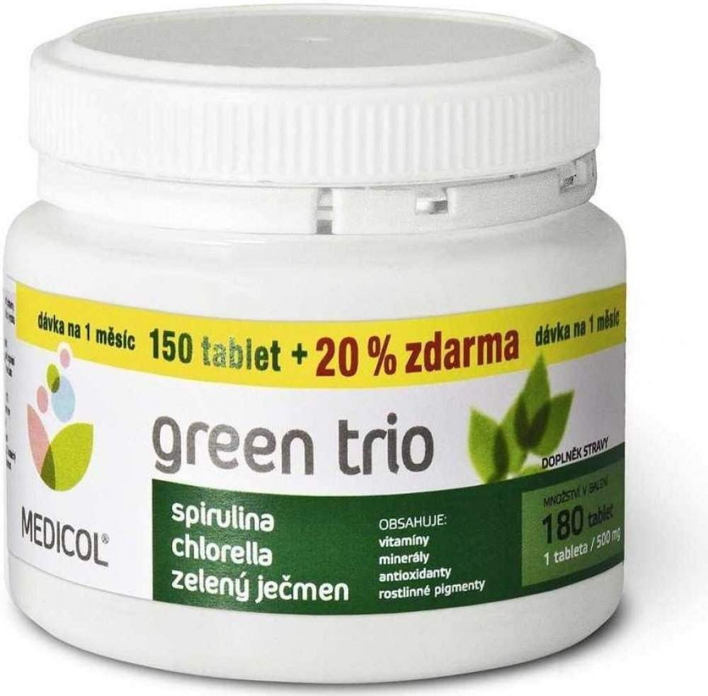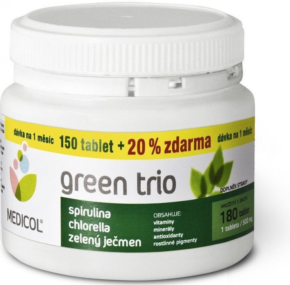 GREEN TRIO značky MEDICOL je přípravek, který v jediné tabletě obsahuje tři "zelené " potraviny.