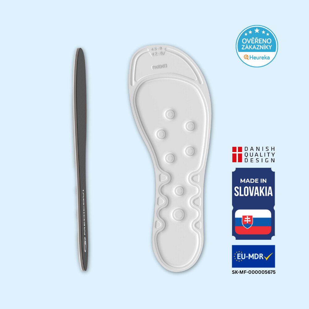 Ortopedické vložky MEDICOVI T40 poskytují komfort při nošení po celý den. Jsou vhodné zejména při únavě paty, předního chodidla, kolen, kyčlí a zad. Vložky MEDICOVI T40 jsou také vhodné pro citlivá chodidla – efektivně tlumí únavu a přispívají k ochraně chodidla při každodenním nošení.