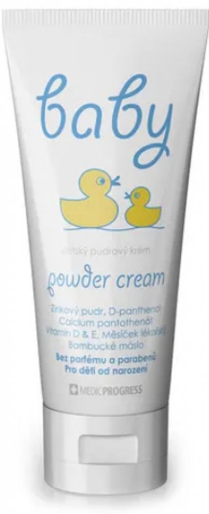 Baby pudrový krém je ochranný, pečující a vyživující dětský krém napomáhající ke zklidnění pokožky při opruzeninách. Dětský pudrový krém pro plenkovou oblast.Chrání pokožku před opruzeninami.Krém je vodoodpudivý.Zjemňuje a zvláčňuje dětskou pokožku.Neobsahuje parabeny ani parfémy.Přípravek je vhodný pro děti od narození.Bambucké máslo obsahuje významné množství nenasycených mastných kyselin, vitamíny A, D a E, rostlinné steroly a vosky. Máslo má vynikající zvlhčující a ochranné vlastnosti pro pokožku. Zároveň příjemně a jemně voní.Zinek přispívá k ochraně buněk před oxidativním stresem.Měsíček lékařský přispívá k normálnímu stavu pokožky a hojení ran. Zjemňuje a zvláčňuje citlivou dětskou pokožku.D-panthenol hydratuje a zvláčňuje pokožku a má regenerační účinky, zrychluje přirozenou obnovu buněk.Vitamin E přispívá k ochraně buněk před oxidativním stresem. Vitamin E je antioxidant, chrání buňky kůže před poškozením.Balení obsahuje 100 ml.