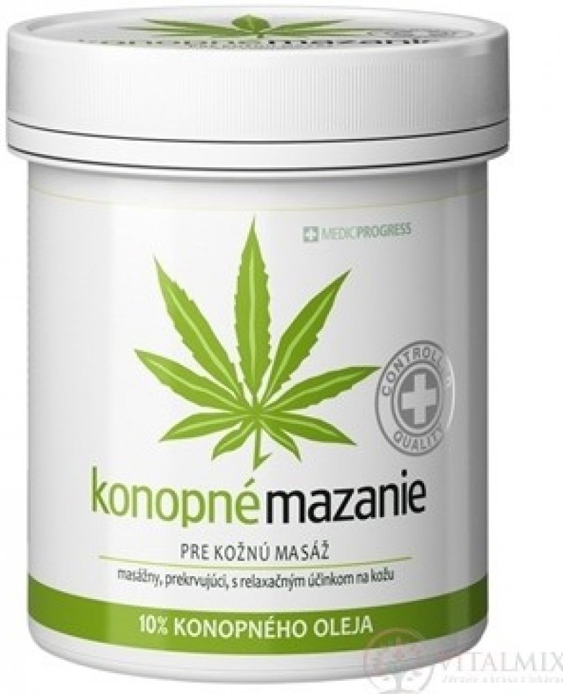 Konopný olej je bohatý na esenciální mastné kyseliny, vitaminy A, B1, B2, B6, C a E, fytin (používaný v lékařství při léčbě chudokrevnosti) a kyselina kanabidiolová se silným baktericidním účinkem. Je také zdrojem důležitých minerálních látek – vápníku, sodíku, fosforu, hořčíku, draslíku i železa, manganu, zinku, křemíku či platiny. Používá se mimo jiné při léčení neurodermitidy (lupénky) a jiných chronických chorob kůže. Dále chrání pokožku před vysoušením, předčasnou tvorbou vrásek.