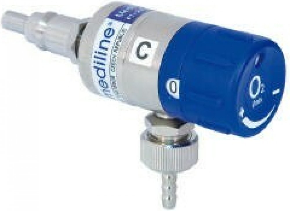 Průtokoměry Mediflow umožňují dávkovat medicinální plyny v jedenácti přednastavených hodnotách, volba hodnoty je prováděna pomocí otočného ovladače. Tento ovladač má na svém okraji výřez, v němž se zobrazuje právě nastavená hodnota průtoku. Tělo průtokoměru je vyrobeno z mosazi povrchově upravené niklováním. Vstupní přípojka je osazena rychlospojkovým ná...