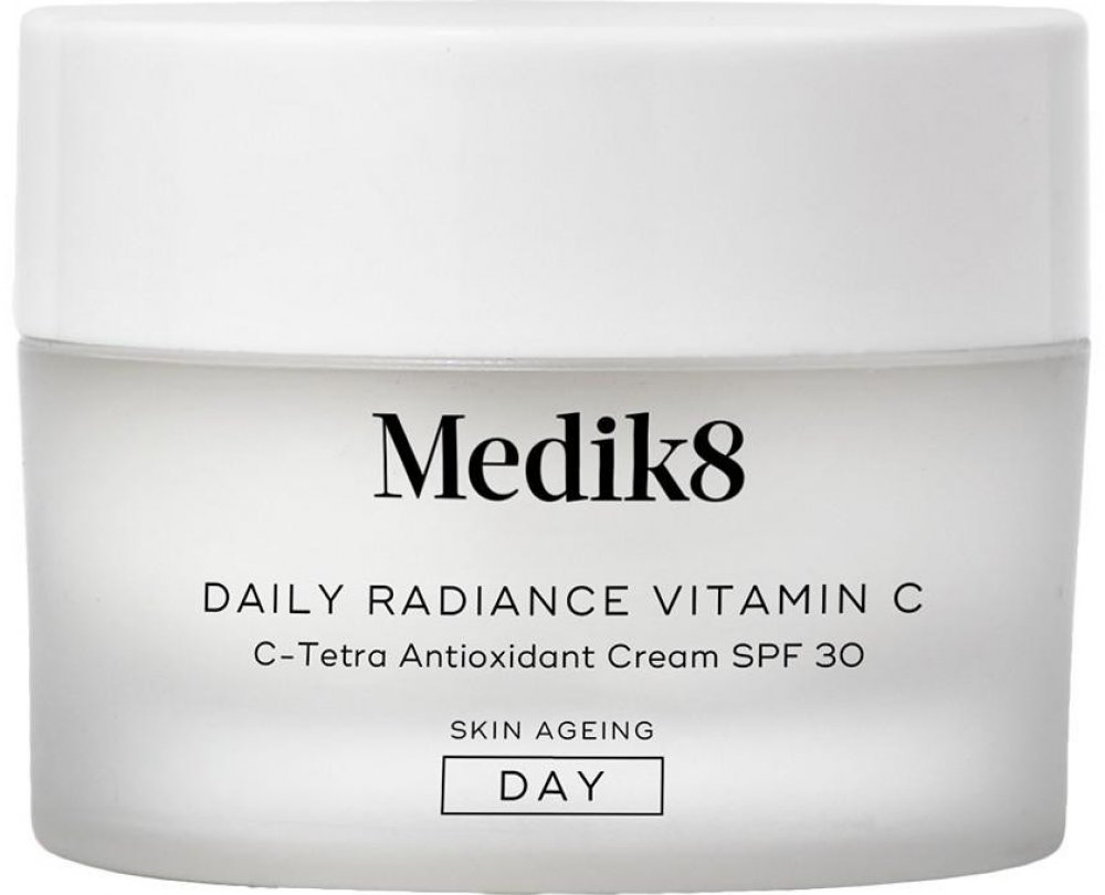 Donedávna, pokud jste pleti chtěli poskytnout vitamín C a chránit ji před slunečními paprsky, museli jste aplikovat dva produkty – sérum s vitamínem C a na něj ochranný krém. Nyní však můžete díky vitamínovému krému DAILY RADIANCE VITAMIN C tyto dva kroky spojit. Jako jediný z hydratačních krémů s SPF od Medik8 obsahuje navíc kyselinu hyaluronovou.