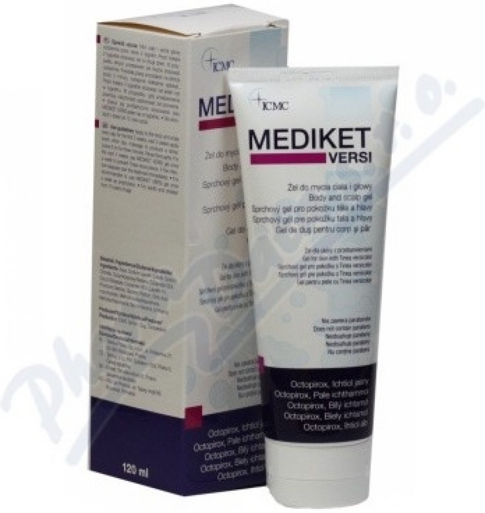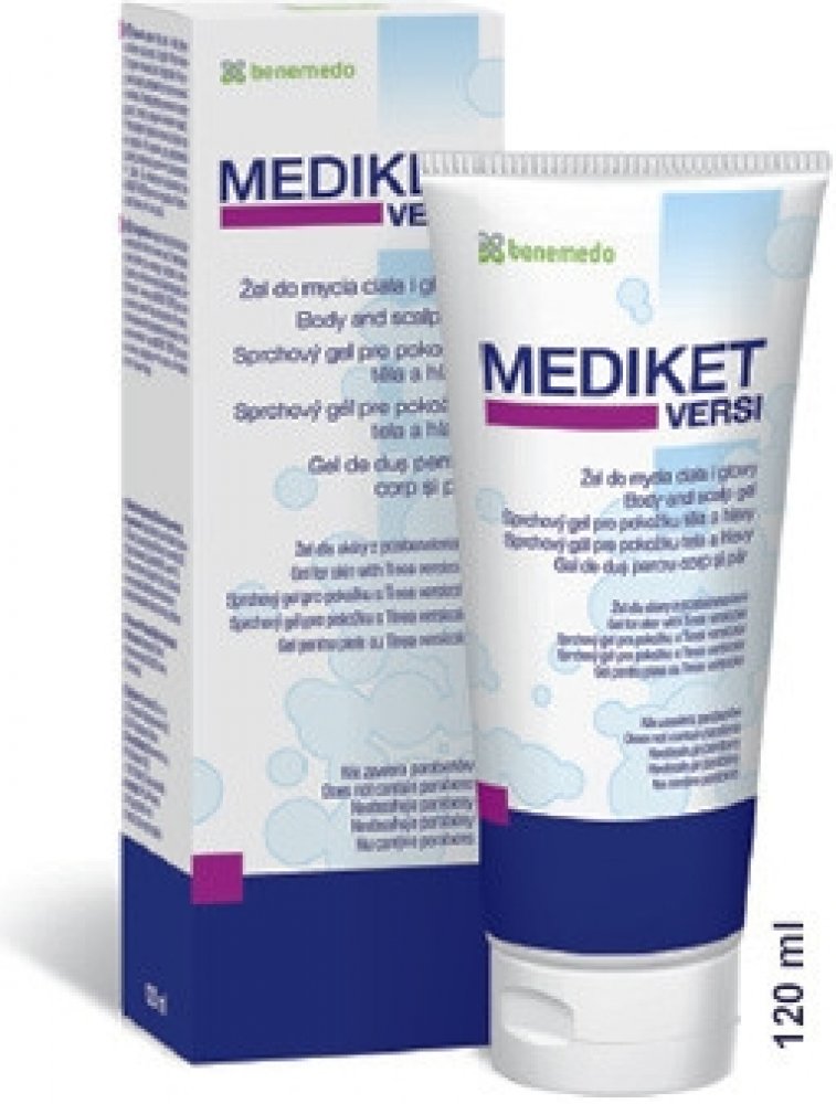 Použití: Používejte na pokožku těla a hlavy každý den po dobu prvních 2 týdnů, další 2 týdny používejte ob den, MEDIKET VERSI gel vmasírujte do pokožky tak, aby vznikla pěna. Nechte působit 3 minuty, pak opláchněte. Podobu následujících 4 týdnů používejte MEDIKET VERSI gel jednou týdně jako prevenci opětovného výskytu Tinea versicolor. V takovém případě začněte používat přípravek okamžitě. K profylaxi používejte MEDIKET VERSI gel jednou týdně. Pro dospělé a děti od 10 let.