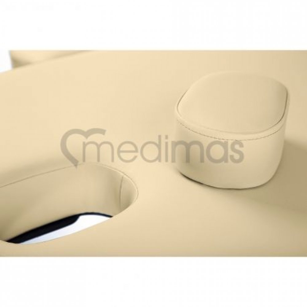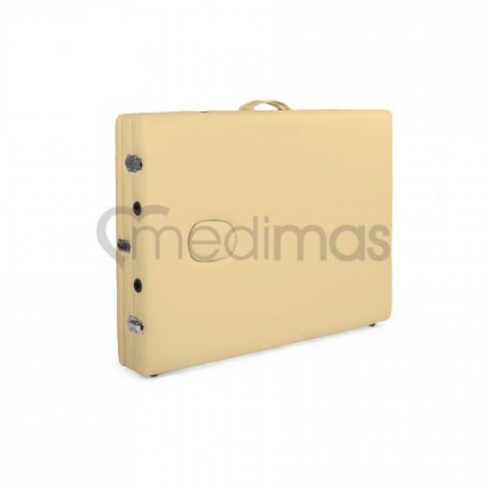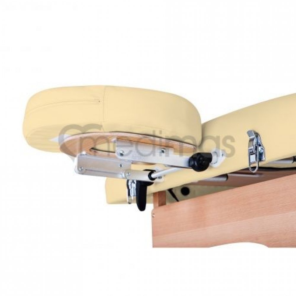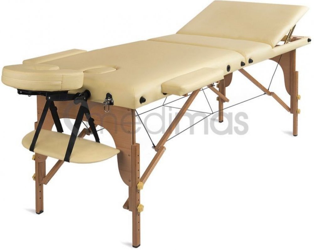 Stabilní třídílné dřevěné masážní lehátko. Nastavitelná výška třetí zóny zajistí správnou polohu nohou. Součástí stolu je transportní taška s kolečky s prostorem na rehabilitační válec nebo roli jednorázového prostěradla. Zárukou vysoké kvality je certifikát CE a registrace jako zdravotnický prostředek 1. třídy.