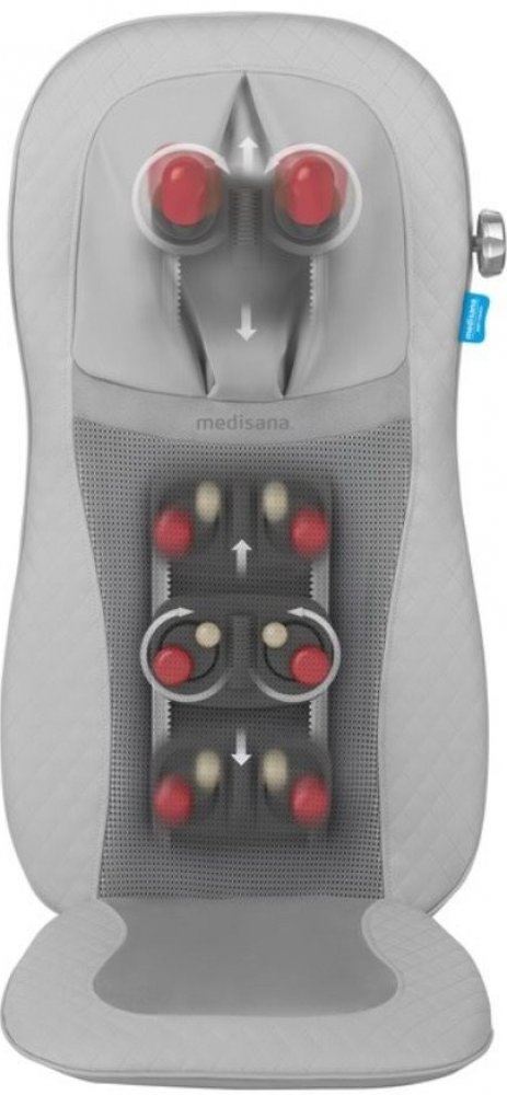 MEDISANA MCG 810 Comfort Shiatsu Gel Massage Seat Cover Masážní podložka Medisana MCG 810 88990 Comfort Shiatsu zajistí díky gelovým hlavicím příjemnější a uvolňující masáž. Vrchní masážní hlavice uvolňují krční páteř a spodní hlavice masírují celá záda. Přidat můžete i vibrační masáž v oblasti stehen. Ovládání je natolik snadné a intuitivní, že ho zvládne opravdu každý. Popis Masážní podložka Medisana MCG 810 Comfort Shiatsu je vybavena čtyřmi gelovými masážními hlavami, které zajišťují jemnou masáž šíje a celých zad. Rozevřené masážní hlavy v oblasti krku jemně a účinně promasírují ztuhlé svalstvo. V sedací části lze aktivovat integrovanou vibrační masáž. Masáž lze nastavit na 3 stupně intenzity. Praktickým páskem podložku snadno připevníte k židli nebo křeslu. Medisana 88990 nabízí funkci vyhřívání pomocí červeného světla v masážních hlavách. Díky jedinečné kombinaci intenzivní masáže a tepla umožňuje účinně uvolnit napětí. Praktický koženkový potah zajistí snadnou údržbu. Potah v krční části je odnímatelný. Masážní podložka MCG 810 přispívá k pocitu pohody po náročném dni a uvolňuje ztuhlé svalstvo. Co je to shiatsu? K důležitým masážním technikám, jako je manuální lymfodrenáž a masáž reflexních zón, patří i forma masáže pomocí tlaku prstů nazývaná shiatsu. Tato forma tělesné terapie, vytvořená v Japonsku, vychází z tradiční čínské masáže. Pomocí jemných dotyků a blahodárného tlaku dochází k probuzení tělesné energie a jejímu rozproudění. Cílem této masáže je jak uvolnění napětí, tak i harmonizace těla a ducha v důsledku optimálního proudění životní energie. Vlastnosti produktu 88990 Typ: Na doma, Vibrační, Vyhřívaný Způsob napájení: Elektrická síť Nevhodné pro: těhotné, s kardiostimulátorem, s umělými klouby, s poruchami prokrvení Délka přívodního kabelu: 1,8 m Čas automatického vypnutí: po 15 min Upevnění: Popruhy Ovládání: Kabel s ovladačem Vyhřívání, temperování Počet stupňů intenzity: 3 Automatické vypnutí Prezentace funkcí pomocí Demo Červené světlo Masáž šíje Masáž zad Masáž ramen Masáž beder Nastavení intenzity Počet masážních hlavic: 4 Hmotnost: 5,5 kg Příkon: 48 W Počet funkcí: 2 LED kontrolka Gelové hlavice Kolečko pro nastavení výšky Vibrační masáž stehen Bodová masáž Odnímatelný potah v oblasti šíje Výška: 43,5 cm Délka: 83,5 cm Šířka: 17 cm Výrobce: Medisana Barva: šedá
