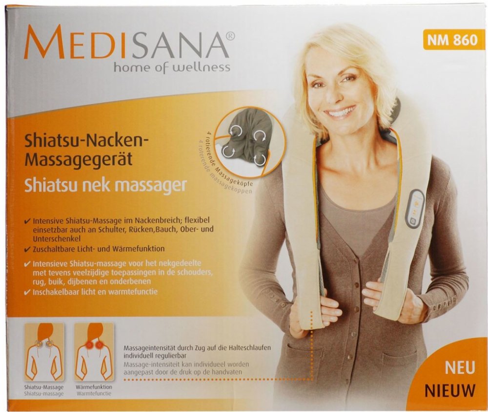 Uvolněte zatuhlé svaly na krku pomocí tohoto masážního přístroje Medisana Shiatsu NM-860. Má 4 masážní hlavice, jejichž intenzitu můžete nastavovat. Využít můžete taky funkci vyhřívání, která podpoří příjemný pocit z masáže. Tato forma masáže rozproudí energii po celém těle a uvolní napětí nahromaděné během dne. Poutka slouží pro umístění rukou během masáže, které přístroj přidržují,ale také umožňují tahem regulovat intenzitu masáže. Funkce automatického vypnutí vypne přístroj po 15-ti minutách, což je doporučená délka masáže. Má snímatelný povrch, který lze prát, takže svůj přístroj udržíte snadněji v čistotě. Objednávejte pod kat. číslem 88961