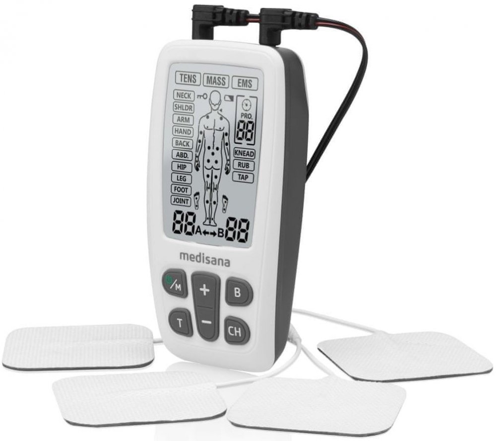 TENS terapie pro 10 částí těla: Šíje, ramena, rameno, ruka, záda, Břicho, boky, nohy, nohy a kloub Léčba v rámci EMS pro 9 částí těla: Šíje, ramena, rameno, ruka, zád