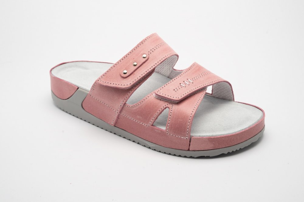 KVALITNÍ, zdravotní, relaxační obuv Albína - skloubení zdraveného obouvání s moderním designem. Velmi pohodlné pantofle mají anatomicky tvarovanou stélku a vyměkčenou patní část, která svými tlumícími účinky šetří klouby i páteř. Anatomicky tvarovaná stélka podepírá příčnou i podélnou klenbu a absorbuje škodlivé nárazy při každém kroku. Poskytuje tak cennou úlevu a pohodlí při celodenním nošení. Pro komfort zdravého obouvání byly použity odlehčené materiály na výrobu podešví s anatomickým tvarováním v oblasti největšího zatížení chodidla. Stélka a svršek je vyrobený z kůže, lícové hovězinové usně. Po navlhnutí je nutné nechat stélku přirozeně vyschnout. Možnost regulace šířky obuvi – dva pásky na suchý zip.Jsou určeny jako domácí, pracovní, vycházková obuv. Péče a pohodlí na každém kroku při celodenním nošení.