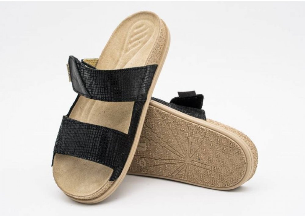 Svršek pantoflí Patricie je navržen s dvěma pásky na suchý zip, které umožňují snadné přizpůsobení šířce nohy, což zaručuje komfort a stabilitu po celý den. Tento model je ideální pro každodenní nošení a pro ty, kteří hledají pohodlnou a stylovou obuv, která zároveň poskytuje oporu pro chodidlo a stabilitu při chůzi.