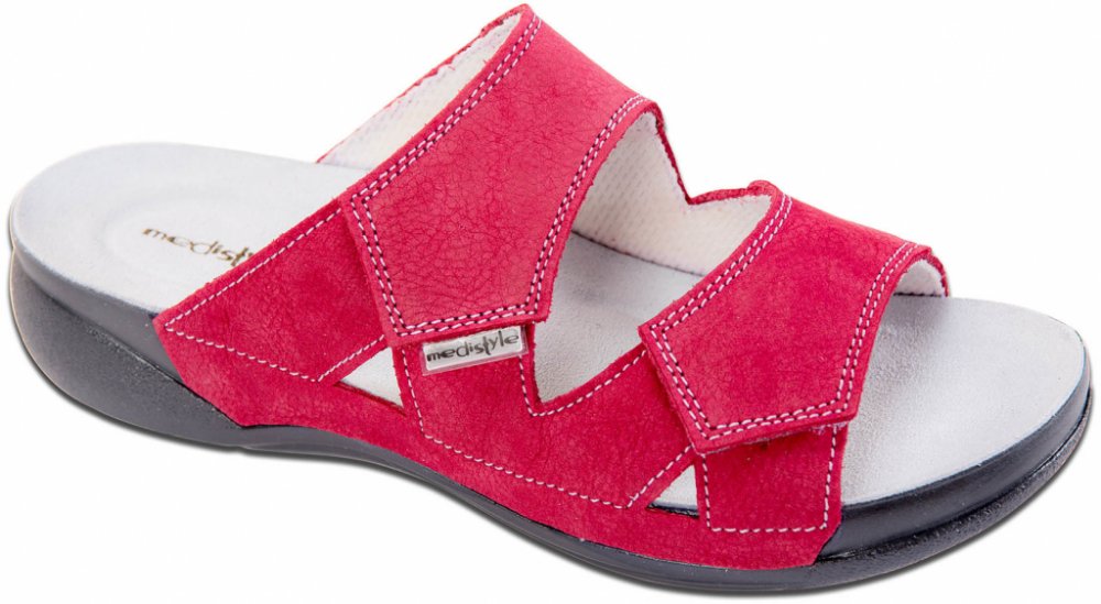 červená Medistyle pantofle kůže bez podpatku volnočasové s otevřenou špičkou s kulatou špičkou se suchým zipem s anatomickou stélkou celoroční