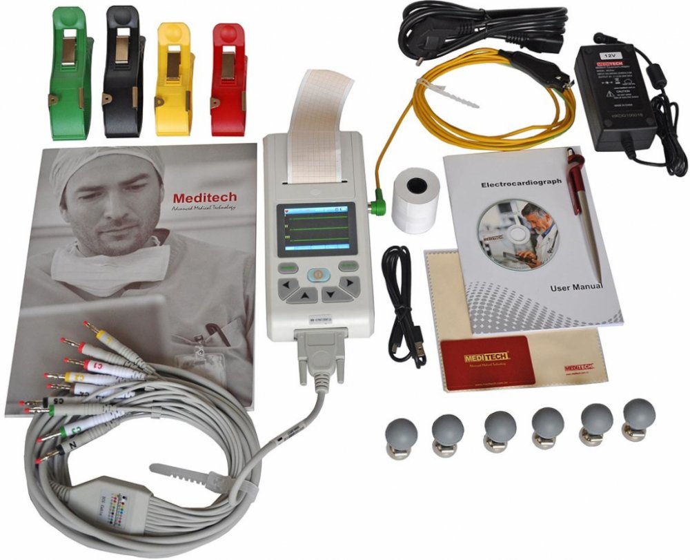 Tříkanálové mobilní EKG MEDITECH 101T s 18cm LCD displejem a tepelnou tiskárnou. Tento přístroj může zaznamenat 450 EKG křivek a tisknout 4 hodiny nepřetržitě při nejlepším DC stavu. Přenosný kardiograf MEDITECH se snadnou obsluhou, provoz na síť nebo baterie. Celková hmotnost přístroje (včetně papíru) je menší než 1 kg. Vhodné např. pro praktické lékaře, kteří vyjíždějí za svými pacienty domů.