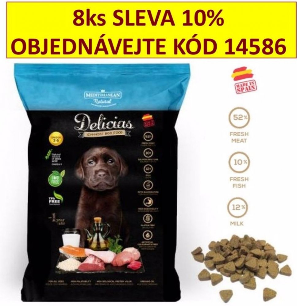 Mediterranean pro štěňata pro všechna plemena pro mláďata ve vývinu kuřecí Delicias 0.8 kg polovlhké poloměkké 25.9 % rýže nízká (<200 mg) 14 % 1.01 % 3.3 % 1.8 % 13.7 % 0.19 % vysoká deklarováno (>40%) standardní základní základní doporučeno (měkké) základní
